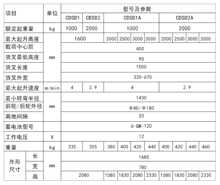 冠航步行式半電動堆高車產(chǎn)品特點: